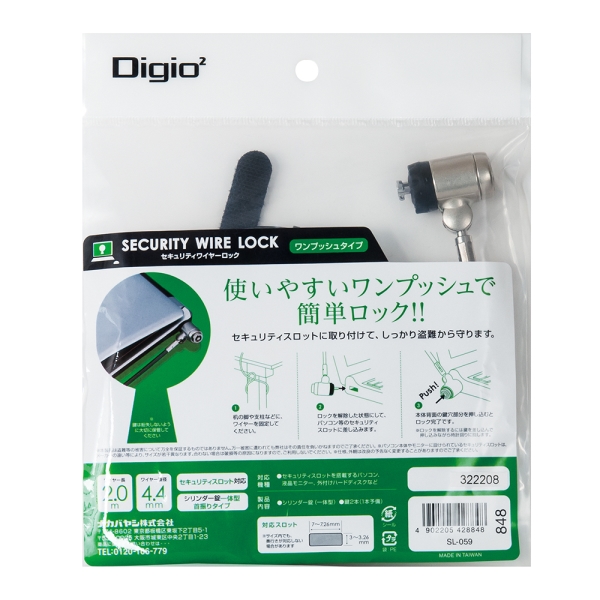 ノートパソコン等のセキュリティスロットに接続して盗難を防ぐセキュリティロック。