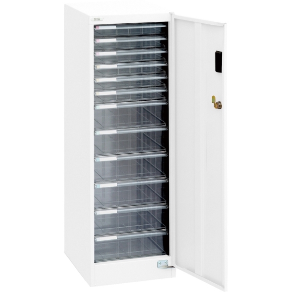 ●材質:本体/スチール粉体焼付塗装 引出し/透明スチロール樹脂 引出し段板/ポリプロピレン