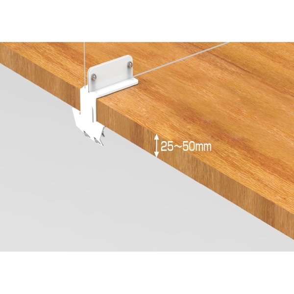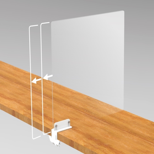 奥行き取付位置は調節可能カウンターの奥行きに合わせてパネル取付位置が調節可能。より効果的な飛沫飛散対策が可能です。天板厚み 18~50mm に対応。様々な厚みに対応します。