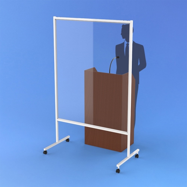 移動可能な大型パネルで飛沫飛散対策を。透明パネルで視線を遮りません。