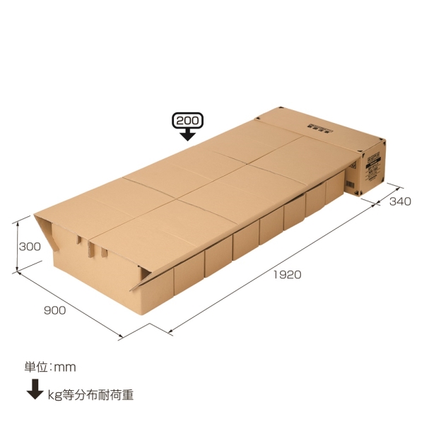 耐荷重200kgの丈夫な2重構造(ダブルカートン仕様)