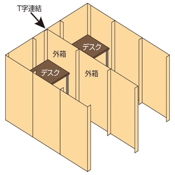 設置ベースと上部クリップで安定した設置。様々な設置に対応。T 字連結も可能です。外箱もパーティションとして利用可能。