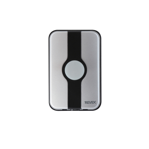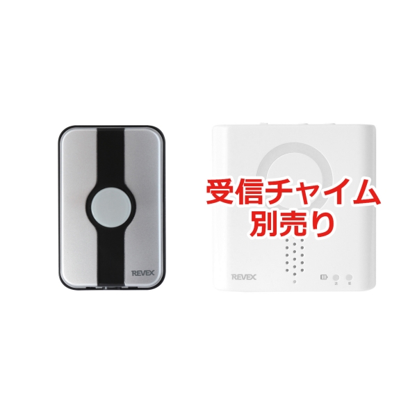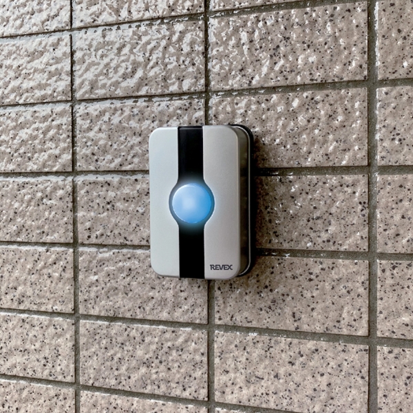 送信機の押しボタンを押すと、離れた場所で受信機(別売)が離れた場所にある受信機が光とチャイム音でお知らせします。