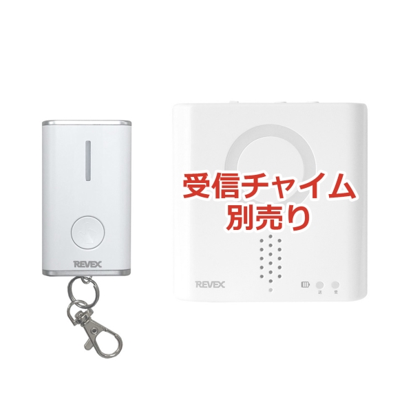 送信機の押しボタンを押すと、離れた場所にある受信機(別売)が光とチャイム音でお知らせします。