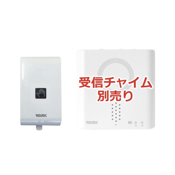 送信機に手をかざすとセンサーが感知し、離れた場所にある受信機が光とチャイム音でお知らせします。