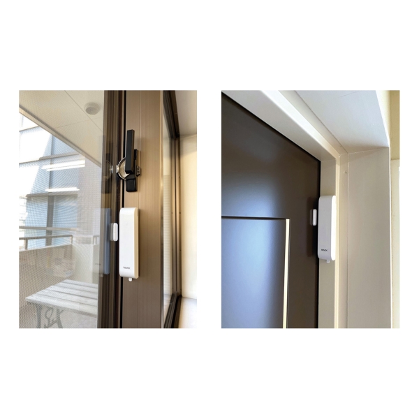 ドアや窓が開くとマグネットセンサーが感知し、離れた場所にある受信機(別売)が光と※チャイム音でお知らせします。 ※XP120はチャイム音は出ません。