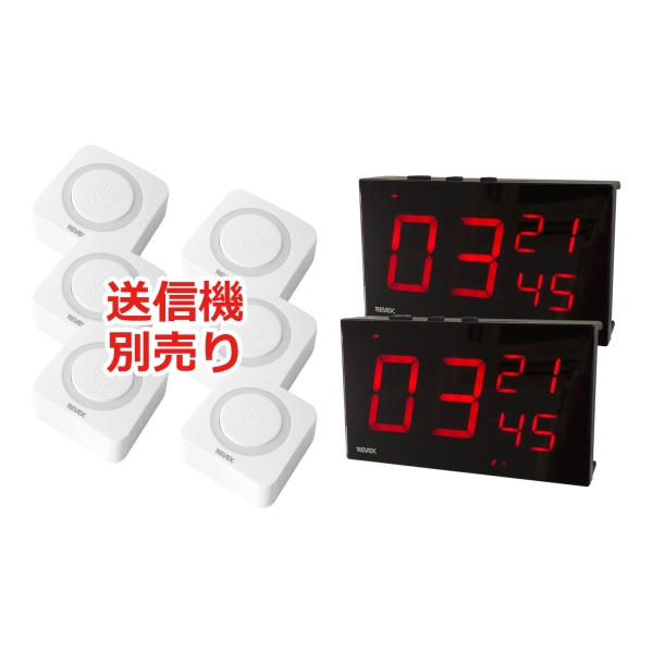 別売の送信機と組み合わせて使います。送信機の押しボタンを押すと、離れた場所にある受信機(別売)が、呼び出しチャイムとNO表示でお知らせします。送信機側(XP10E)で呼び出しNOを消すことができます。