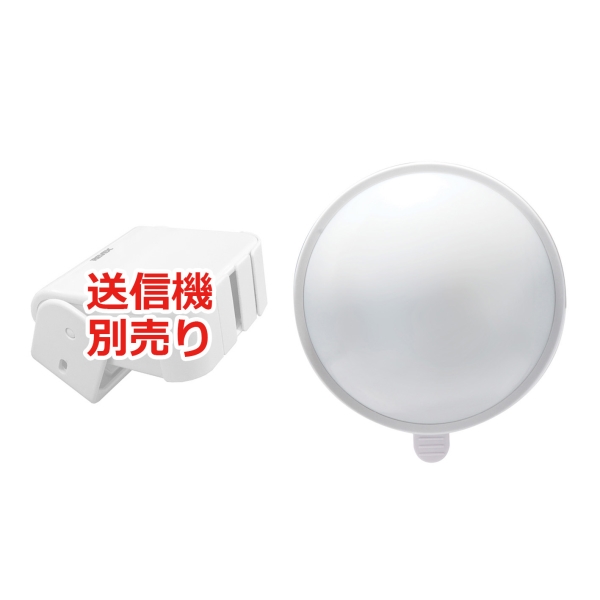 別売のセンサーが感知すると、離れた場所でライトが点灯します。受信ライトは64パターンの色や光り方でお知らせします。※ご注意!:チャイム音は鳴りません。